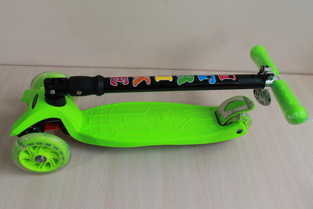 Колеса самоката світяться різнобарвними вогниками, коли дитина набирає швидкість. Яскраві світлові ефекти коліс мотивують дитини покататися на самокаті, а також продемонструють його силу і спритність. Похвала з боку батьків або інших діток можливо найкраща нагорода за старання.