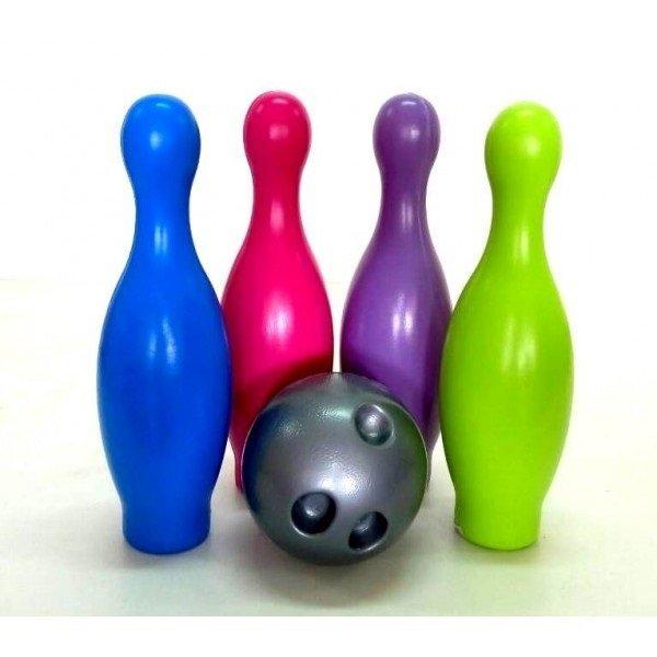 Набір Гра в боулінг — прекрасна іграшка для проведення ігор як удома, так і на свіжому повітрі (в пісочниці або на майданчику). Гра в боулінг складається з 4 кеглів і 1 кулі. Усі елементи виготовлені з високоякісної пластмаси. Кеглі для боулінгу виготовлені в мініатюрному форматі. Отвори в кулях також зроблені спеціально під розмір дитячих ручок. Гра з кеглями сприяє розвитку в дитини зосередженості, логічного мислення та концентрації уваги. До того ж така активна гра покращує рухливість дітей, розвиває їхні м'язи, влучність і спортивність. Діаметр кулі — 10 см. Висота кеглі — 25 см.